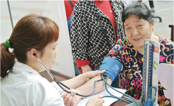 送健康進(jìn)社區(qū)——社區(qū)醫(yī)務(wù)室選派醫(yī)生、護(hù)士現(xiàn)場(chǎng)義診,并邀請(qǐng)?zhí)厣剖覍<遗e行養(yǎng)生保健的咨詢與健康小知識(shí)的宣傳。