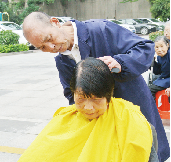 志愿者免費(fèi)為業(yè)主理發(fā)、刮胡子,讓大家改頭換面,清清爽爽迎接新的一天。