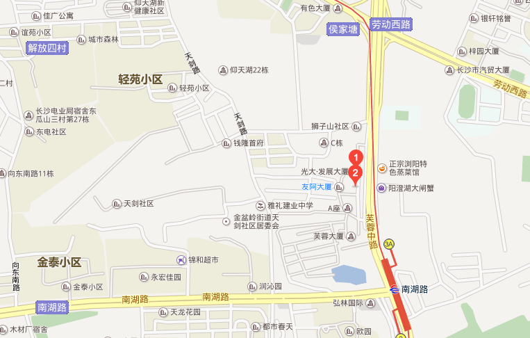 友阿光大大廈系友誼阿波羅集團控股公司與湖南星誠房地產(chǎn)有限公司鼎力打造的城市綜合體。項目由兩棟百米高層建筑聯(lián)接,以現(xiàn)代時尚標志建筑雄踞侯家塘,地址位于長沙市天心區(qū)芙蓉中路三段142號,項目類型為高檔寫字樓。附地圖。