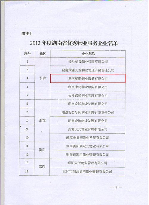 鯤鵬物業(yè)喜獲“湖南省優(yōu)秀物業(yè)服務(wù)企業(yè)”稱號