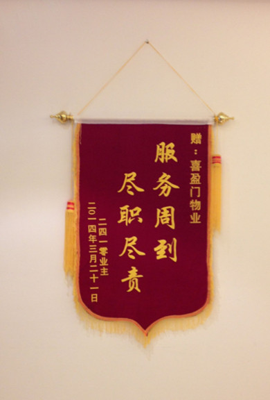 這面錦旗對業(yè)主來說也許不算什么,但對我們物業(yè)公司來說卻是莫大的鼓勵,是對我們工作的認(rèn)可,更是對我們一直以來努力的肯定。在以后的工作中,我們將繼續(xù)努力,一如既往的為所有業(yè)主提供優(yōu)質(zhì)服務(wù),用實(shí)際行動去詮釋“用心服務(wù)、相伴一生”的服務(wù)理念。(文/圖 喜盈門范城-吳海信 李賽男)