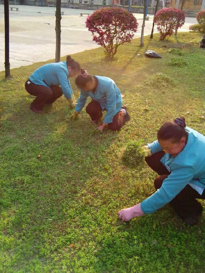她們都是保潔部的基層員工,在服務(wù)中心人少事多的情況下,盡個(gè)人最大的能力,配合安排做著綠化部拔草的工作。她們,沒有很高的學(xué)歷,也不懂什么深刻的道理,但在她們樸實(shí)的身上你可以看到年輪的痕跡,在她們紅撲撲的臉上你可以看到晶瑩的汗珠,在她們燦爛的笑容中你可以看到她們對(duì)生活的熱愛。