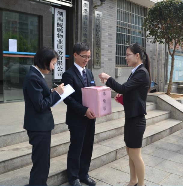 信息來源:鯤鵬物業(yè) 發(fā)布時(shí)間:2014/4/10 閱讀:3084本站訊,天有不測風(fēng)云,人有旦夕禍福,2014年3月31日,湖南鯤鵬物業(yè)服務(wù)有限公司富春山服務(wù)中心員工彭杏芝、張胡生不幸發(fā)生車禍,其中一名員工至今仍在醫(yī)院重癥病房進(jìn)行治療,高額的治療費(fèi)用,也讓這個(gè)家庭雪上加霜。公司在得知這個(gè)情況后立即組織公司總部及各服務(wù)中心員工進(jìn)行愛心捐款,希望給這個(gè)不幸的家庭經(jīng)濟(jì)上一些幫助和精神上的支持,幫助他們走過人生的困難時(shí)期。