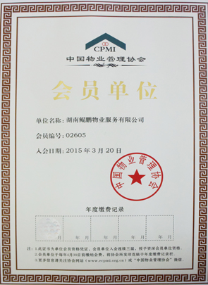 湖南鯤鵬物業(yè)成為中國物業(yè)管理協(xié)會會員單位