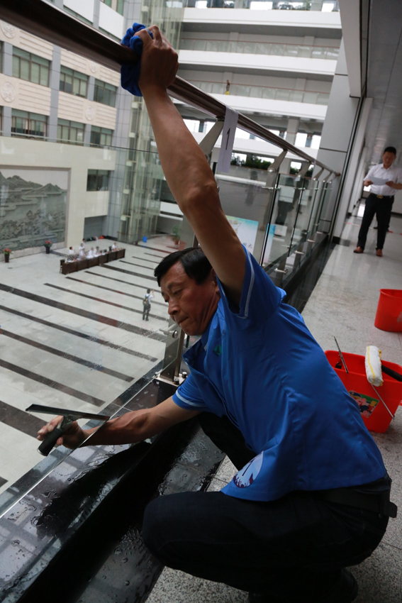 認(rèn)真細(xì)致,不放過任何灰塵瑕疵的保潔人員
