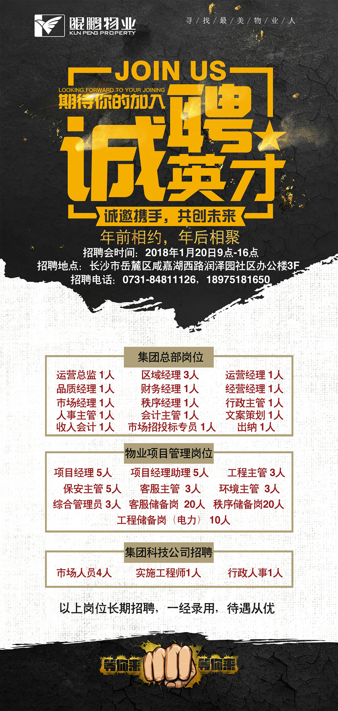 由于公司項目拓展及業(yè)務(wù)發(fā)展需要,現(xiàn)大量儲備中高層骨干及基礎(chǔ)員工,歡迎業(yè)界精英及有志之士加盟。