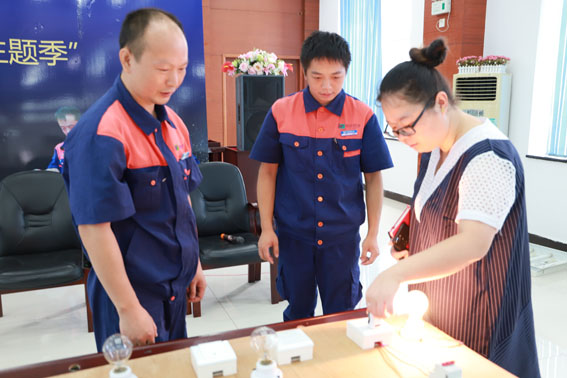 首先登場是外圍小組。在接到“業(yè)主”求助電話后,客服人員立刻聯(lián)系項目工程人員,工程人員迅速出擊,很快便排除了故障。接下來是河西小組。由于太過緊張,該小組未在規(guī)定時間內完成雙控開關的安裝,后來在專業(yè)人士的指導下完成任務。由于難度指數(shù)較低,第三個出場的益陽小組在5分鐘之內便完成了空氣開關跳閘的處理。最后上場的河東小組也像第二組一樣出現(xiàn)了一些失誤,好在最后拿出圖紙及時做出調整,完成了日光燈管的安裝。