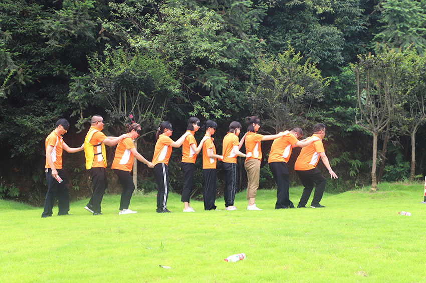 “游龍出?!笔且粋€(gè)團(tuán)隊(duì)配合的項(xiàng)目,全隊(duì)所有人用綁腿繩將腳連在一起,橫向一排,在盡量少的時(shí)間內(nèi)從起點(diǎn)到達(dá)終點(diǎn)。在這個(gè)項(xiàng)目中,團(tuán)隊(duì)配合至關(guān)重要,如何調(diào)整自己與團(tuán)隊(duì)的步伐,成為團(tuán)隊(duì)成功的關(guān)鍵。