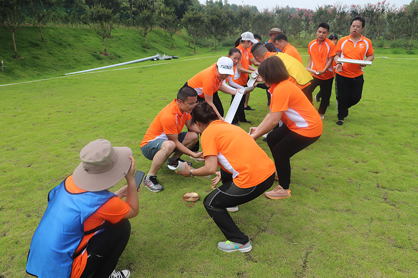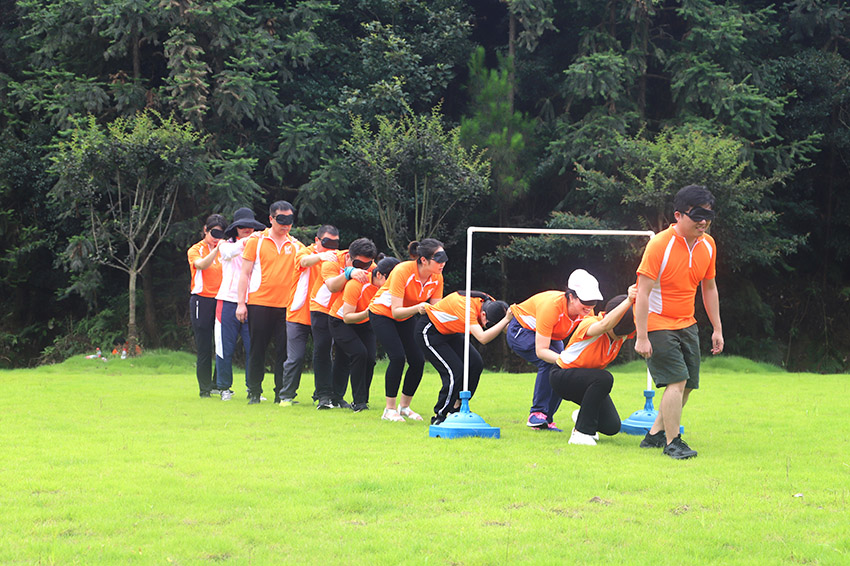 “穿越火線”也是一種團(tuán)隊(duì)合作項(xiàng)目,在全體隊(duì)員面前懸掛一張"電網(wǎng)",網(wǎng)上的洞口大小不一,在指定洞口從網(wǎng)的一邊依次通過到達(dá)另一邊,在此過程中隊(duì)員的任何部位都不允許碰網(wǎng)。其實(shí)規(guī)則不復(fù)雜,就是把人順利從網(wǎng)的這邊送至另一頭。在活動(dòng)的過程中,我們可以看到,身材魁梧有時(shí)挺讓人尷尬,比如這幾位同事,穿越的難度已經(jīng)達(dá)到十級(jí)!其實(shí),只要我們安排合理,再結(jié)實(shí)點(diǎn)也沒有問題。這就告訴我們,任何事情在做決定前,必須考慮周全,有策略、抓重點(diǎn)、多嘗試。