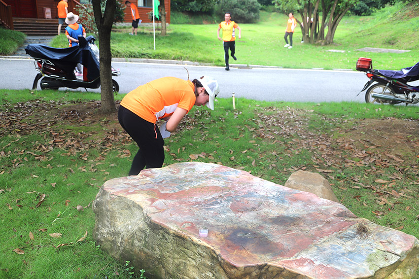 尋寶活動(dòng)共分6個(gè)小組,每組領(lǐng)到一張標(biāo)有“寶物”位置的地圖。在主教練宣布“尋寶”規(guī)則后,各組成員迅速聚在一起研究行進(jìn)路線,然后一窩蜂似的涌了出去,爭(zhēng)先恐后地奔向目的地。有目標(biāo)才有前進(jìn)的動(dòng)力!奔跑起來,擦亮雙眼,敏銳察覺,“寶物”盡收囊中!