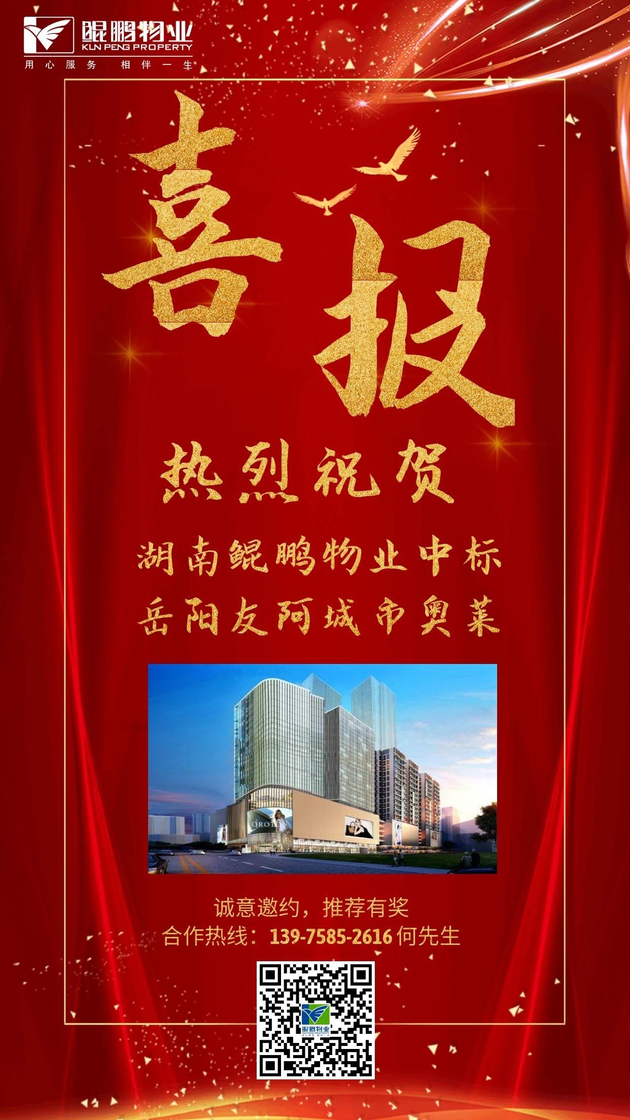 喜報! 熱烈祝賀湖南鯤鵬物業(yè)中標(biāo)岳陽友阿城市奧萊!