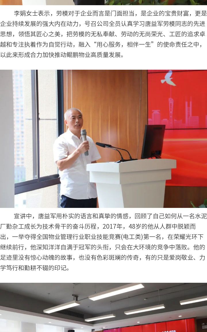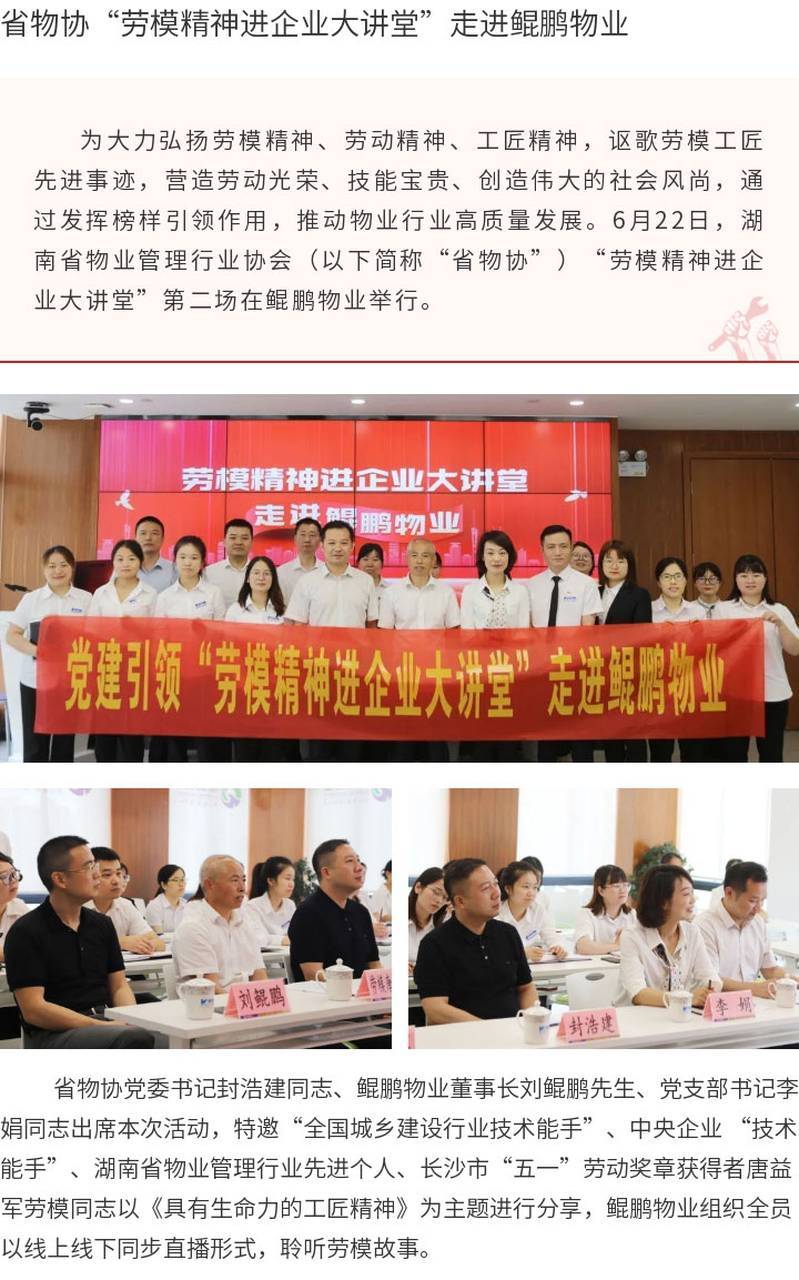 省物協(xié)“勞模精神進(jìn)企業(yè)大講堂”走進(jìn)鯤鵬物業(yè)